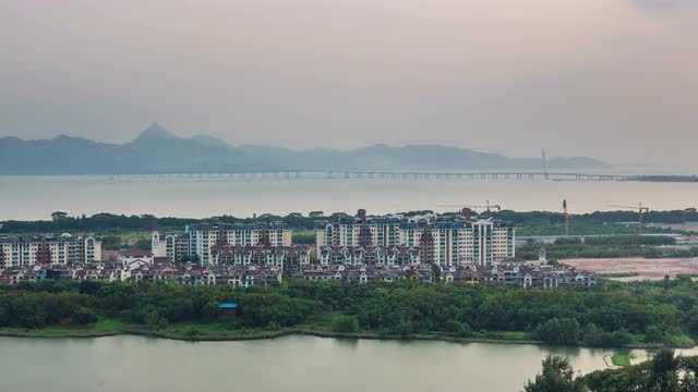 day till night sunset shenzhen city roof top panorama 4k time lapse china