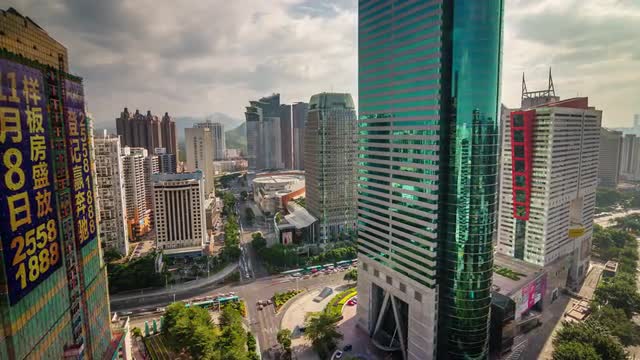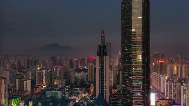 shenzhen night light roof top cityscape panorama 4k time lapse china