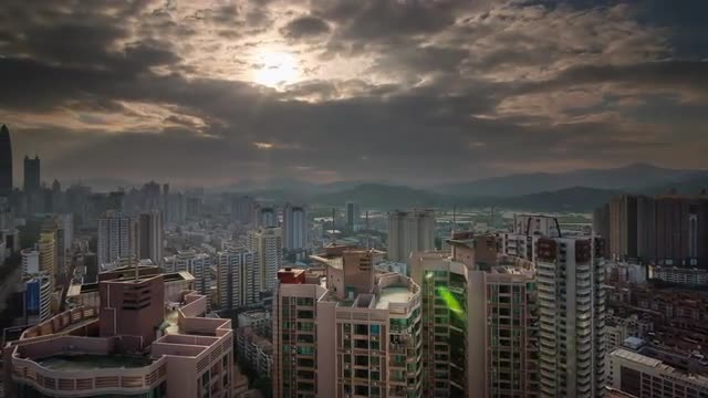 > sunset light shenzhen roof top round panorama 4k time lapse china
