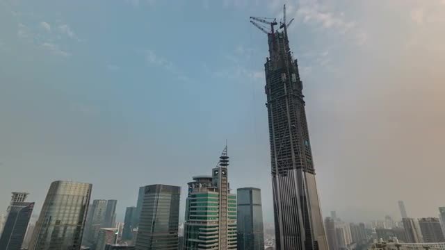 > day light shenzhen city glass building reflection 4k time lapse china