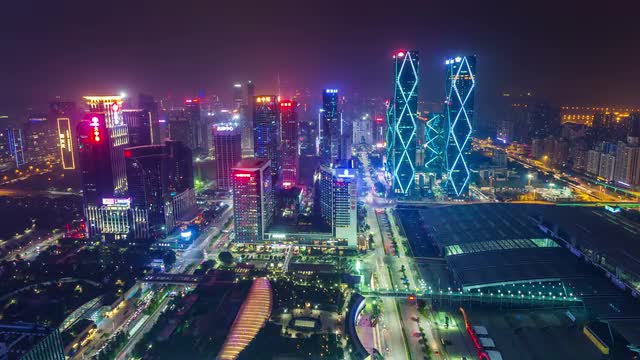> shenzhen city night light illumination cityscape 4k time lapse china
