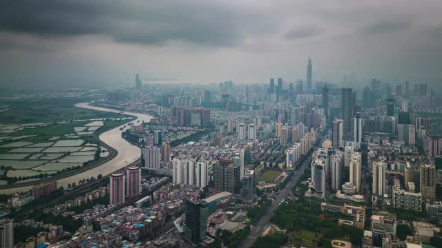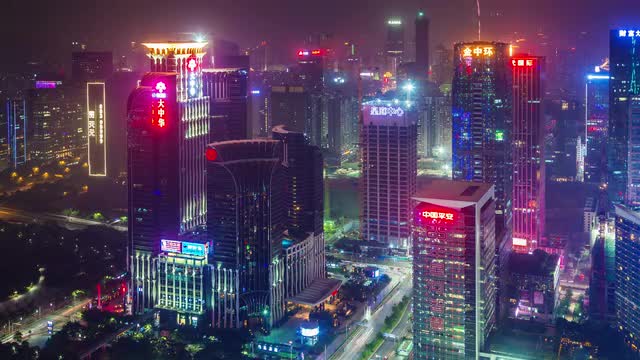 shenzhen night light city illumination roof top view 4k time lapse china