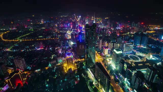 > shenzhen night light city illumination roof top view 4k time lapse china