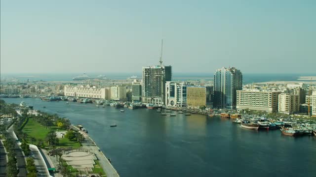 > day light dubai city deira part water boat parking 4k time lapse uae