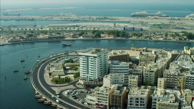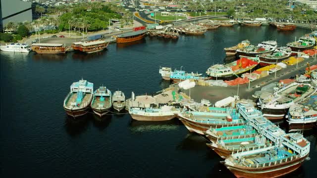 day light dubai city deira part water boat parking 4k time lapse uae