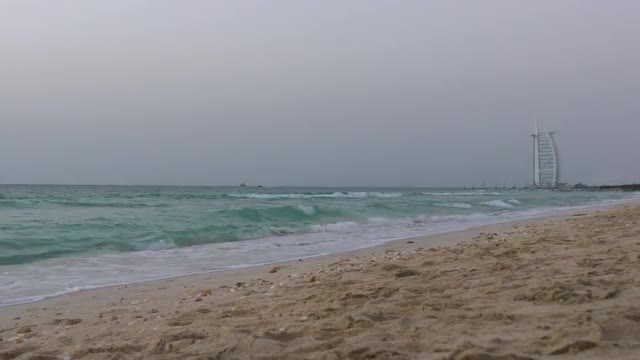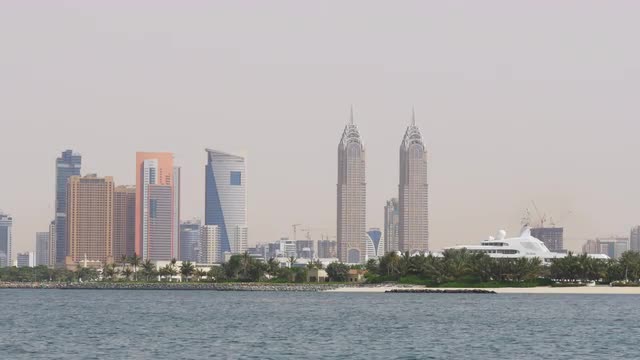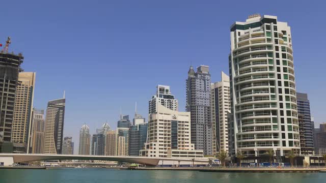 sunny day dubai marina city palm bay panorama 4k time lapse uae