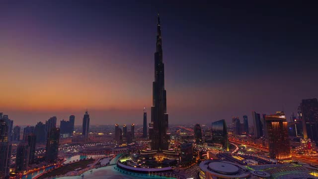 dubai illumination world highest building roof panorama 4k time lapse uae