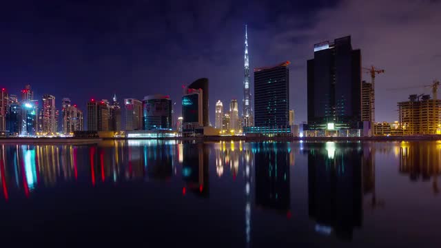 night illumination dubai world highest building water panorama 4k time lapse united arab emirates