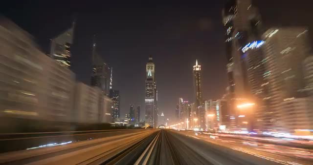 dubai city maint road traffic night illumination panorama 4k time lapse united arab emirates
