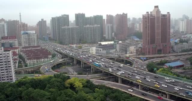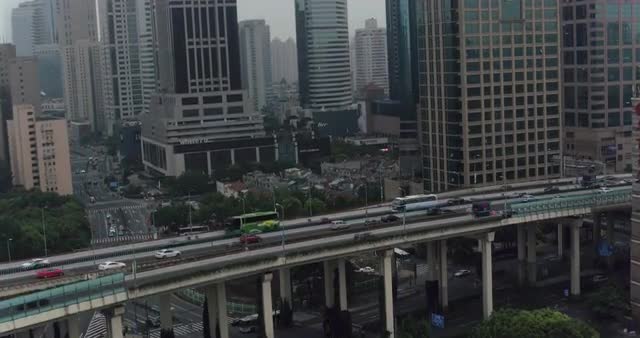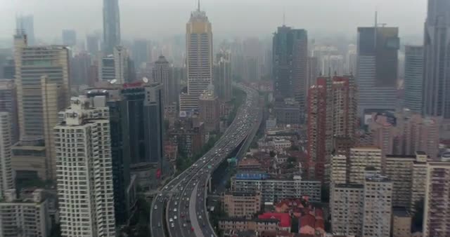china shanghai summer day industrial road junction panorama 4k time lapse