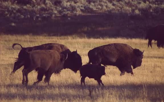 Bison running in Grand Teton National Park during sunset in super slow motion on a Phantom Flex.