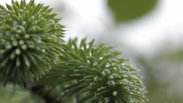 Extreme Close up Green Plant in Rain