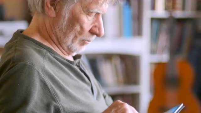 Young woman and senior people sitting at the table at home. Family members discussing something using tablet computer