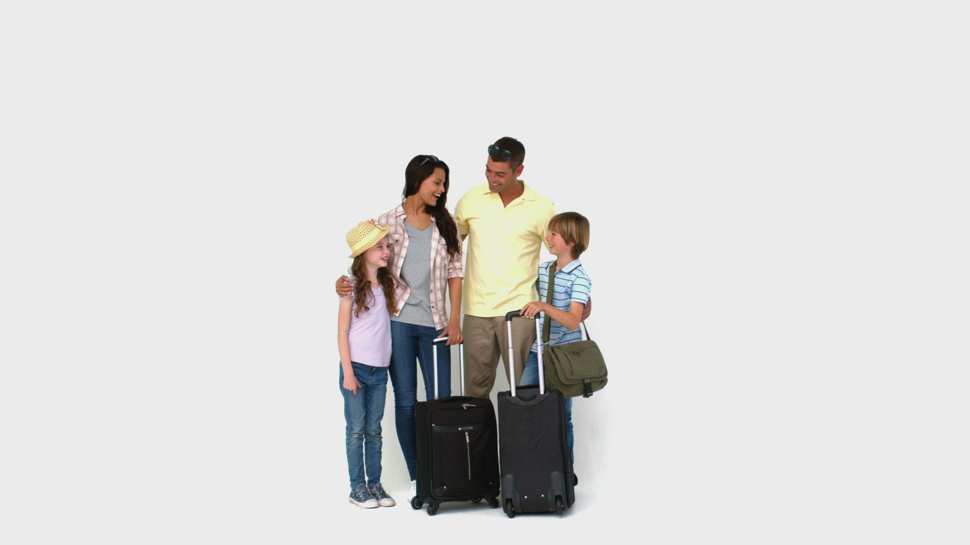 Mother and child leaving suitcase in baggage room