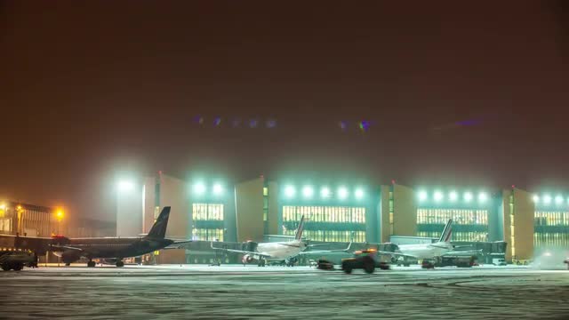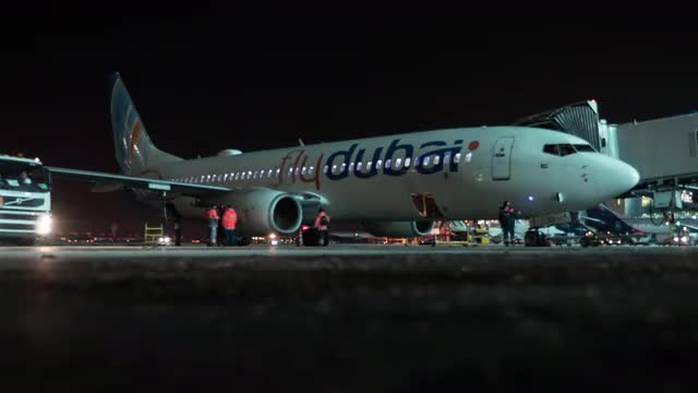 > Airplane is prepared for boarding passengers at night