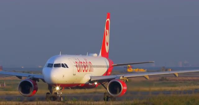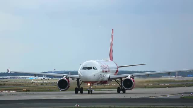 THESSALONIKI, GREECE - AUGUST 15, 2015: Airplane moving on the take-off strip and then making a turn. Airberlin is the second largest airline in Germany