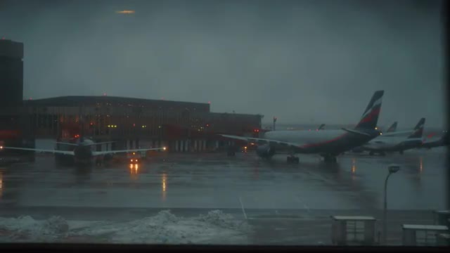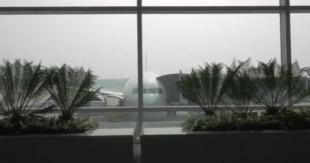 PARIS, FRANCE - SEPTEMBER 06, 2015: Passenger airplane of AirAsia moving at airport area, view through the terminal window. Malaysian low-cost airline