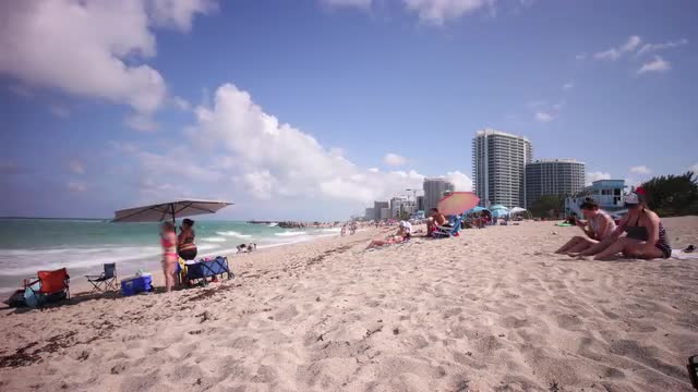 Kiev/ukraine - Aug 16 2016: Ukraine August 2016. the Camera Flies to the Seaside Resort. Vacationers Are Located on the Warm Sand. Azure Sea Rolls Ashore. People Sunbathe and Swim. Bird's-Eye View Seen Umbrellas, Deck Chairs and a Lot of People