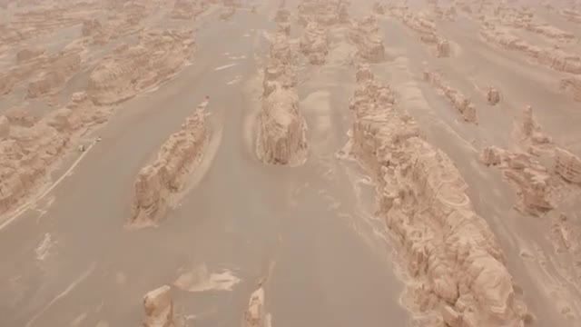 POV WS Aerial view of beautiful Yadan landforms in China