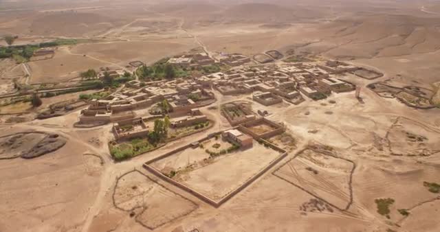 POV WS Aerial view of a small villages and landscape in north Morocco, Africa