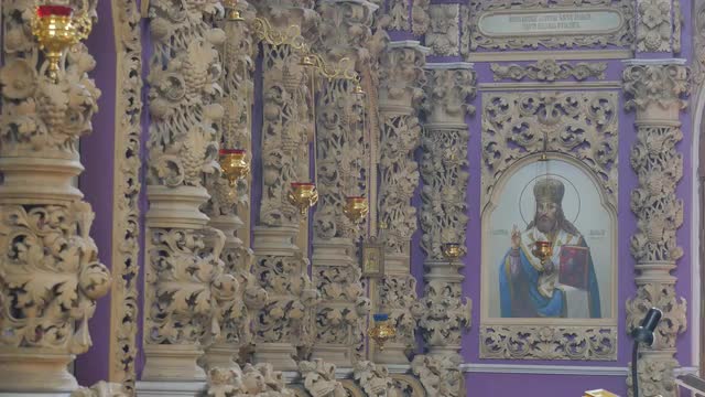 Gilded Interior of the Seven-Domed Cathedral Trinity Day Service Poltava Ukraine Candlestick Religio