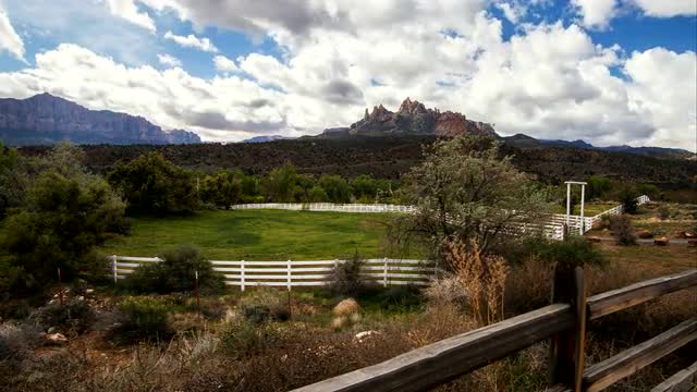 Time Lapse of Green Field as Clouds Move Through the Sky in Zion National Park.