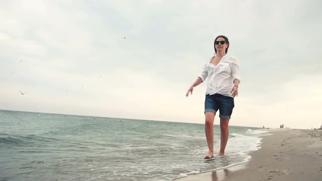 Attractive girl on the seacoast in sunglasses