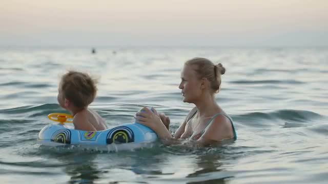 Little boy runs along sealine and fall do
