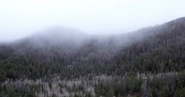 > Fog over mountain forest, Santa Fe, New Mexico, United States