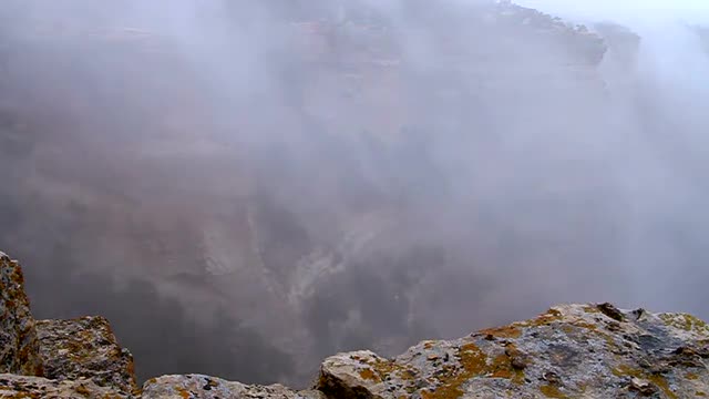 Fog blowing up and out of the Grand Canyon.