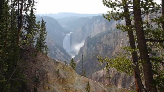 Zoomed in View of Lower Yellowstone Falls as the water crashes below.