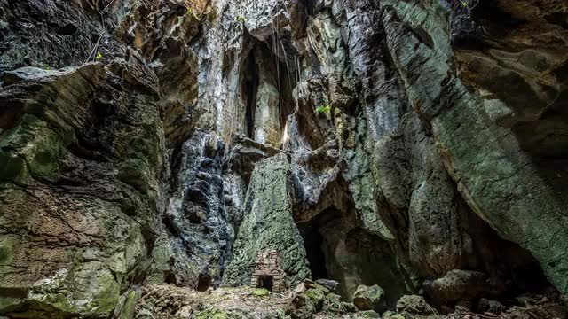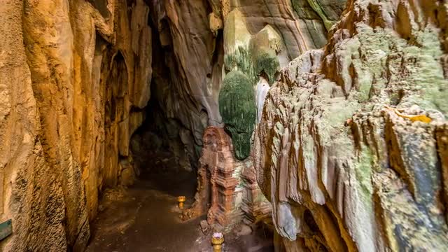 4K UHD Timelapse footage (424 frames) of stalactites and stalagmites in the Paradise Cave in Phong Nha-Kẻ Bàng National Park, Vietnam. Camera pans to the right.
