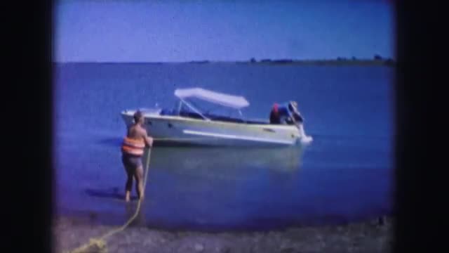 > 1961: a boat is seen brought into water being pushed down by a car IOWA
