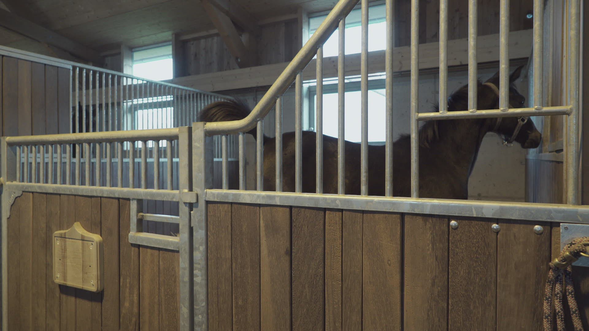 > 1961: a person is seen feeding a horse and walking with it IOWA
