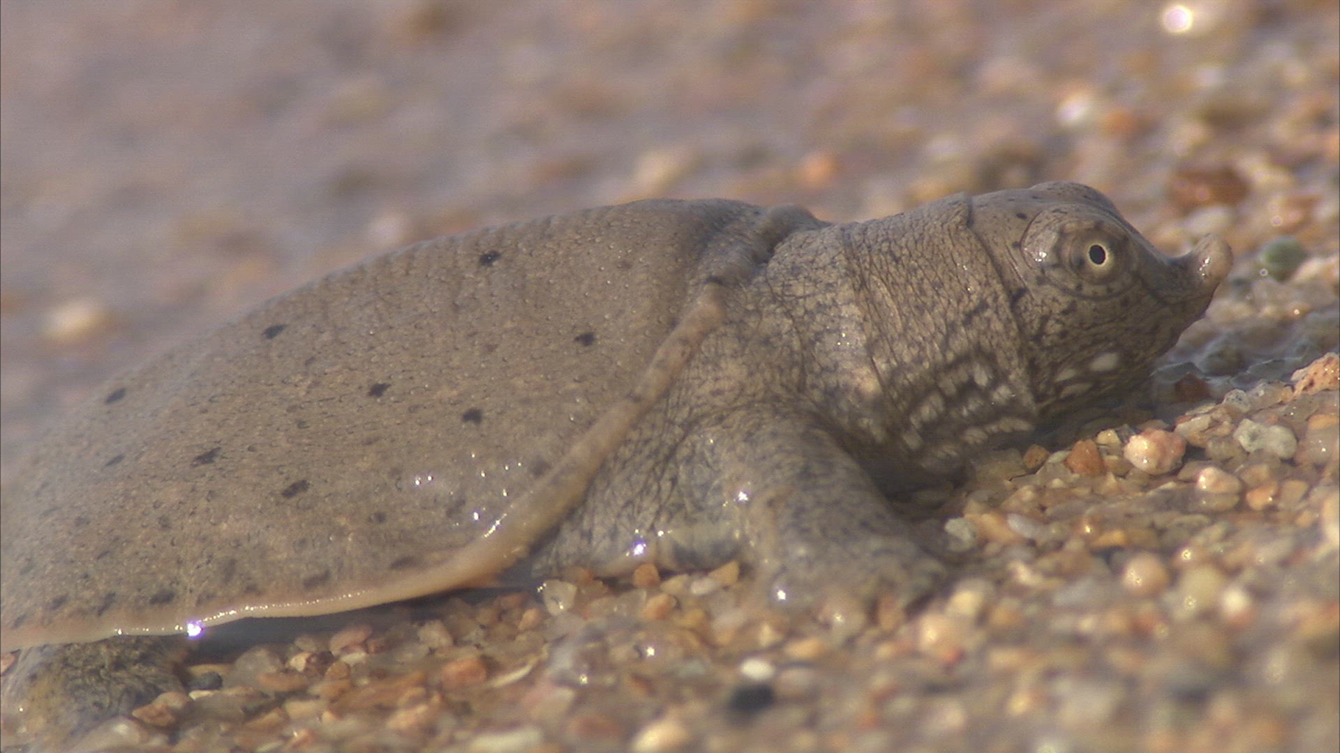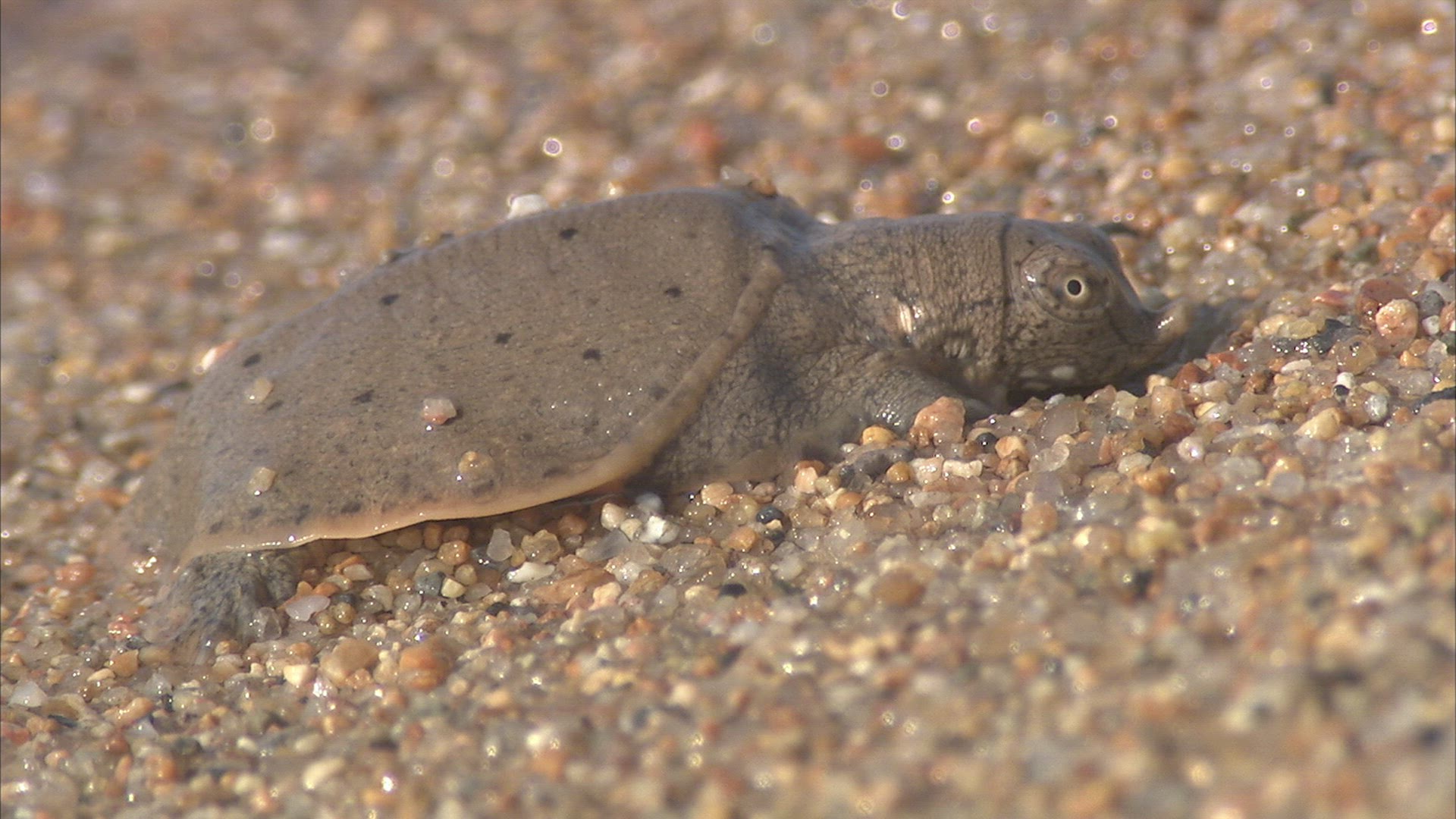 1963: a turtle walks (not so slowly) on the gravel and pries a bit FRANCE