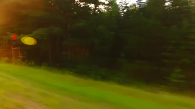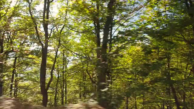 716167 - A car traveling on the road view from the window the trees with sunlight.