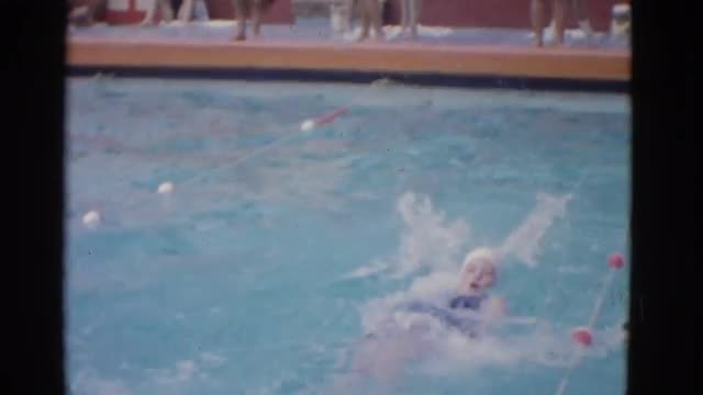 1953: a lady is seen practicing her backstroke in a swimming pool. the perfection is slow that shows