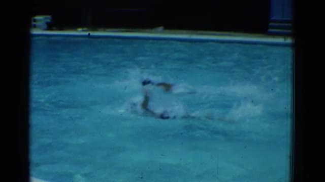 1953: two men diving into a pool during a swimming competition COTTONWOOD, ARIZONA