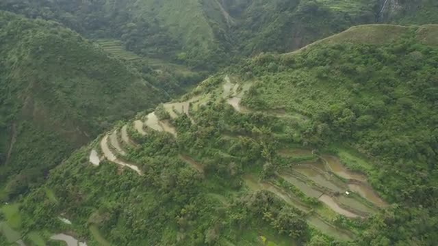 > 1979: the scene shows an aerial view of beautiful mountains and high grasslands the video has clouds