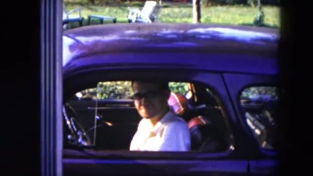 1954: waving man leaves car to beckon to someone or something HICKSVILLE, NEW YORK