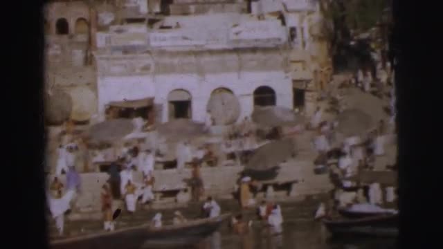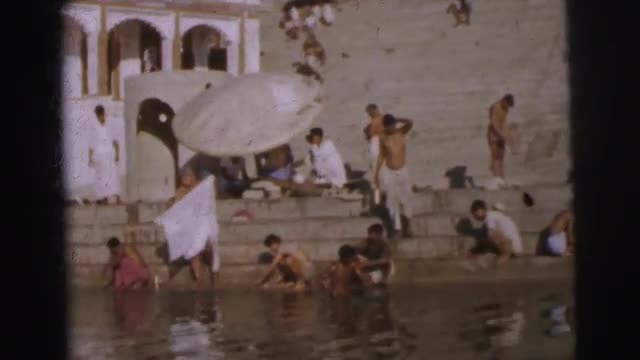 > 1962: men and women bathing and rowing a boat. BANGKOK, THAILAND