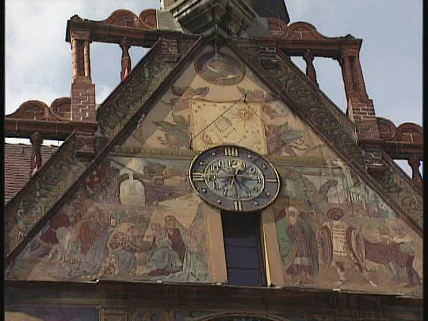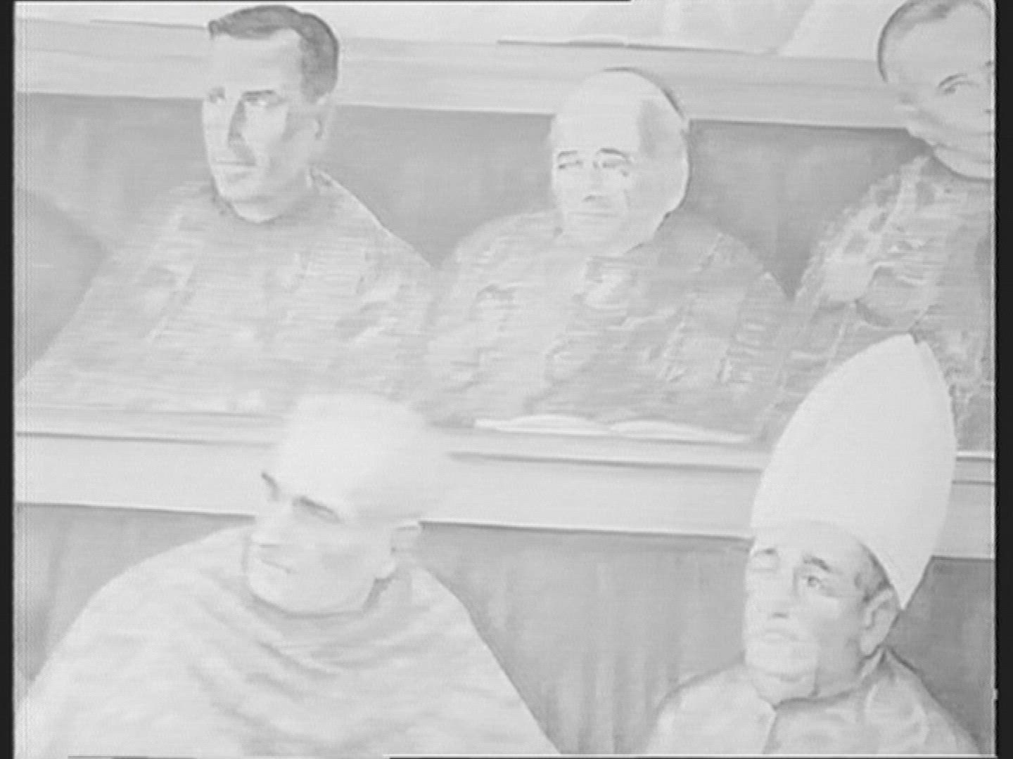 1963: an outdoor view of a church with a large mural of mary and then a gathering inside BARRINGTON,