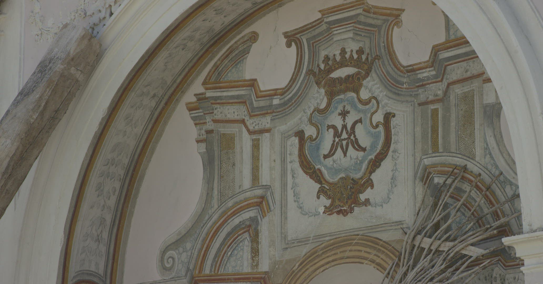 > 1963: an outdoor view of a church with a large mural of mary and then a gathering inside BARRINGTON,