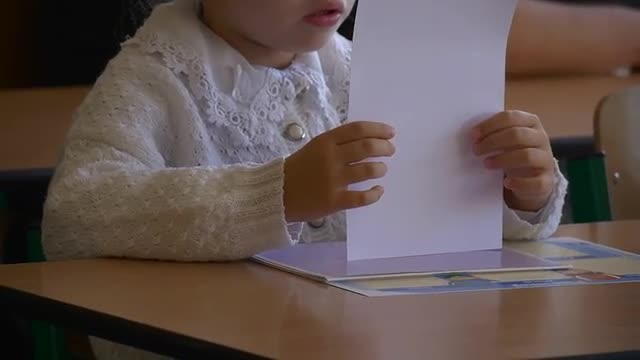 > Boys and Girls Sit at School Desks in School No2