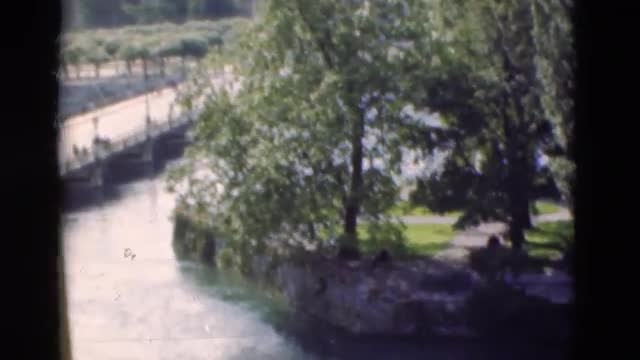 1948: the scene shows a pool with trees around and seems like man made area like a park or a mini zo