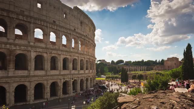 Dusk timelapse of the Roman street Via degli Annibaldi with car traffic. Rome, Italy. April, 2016.