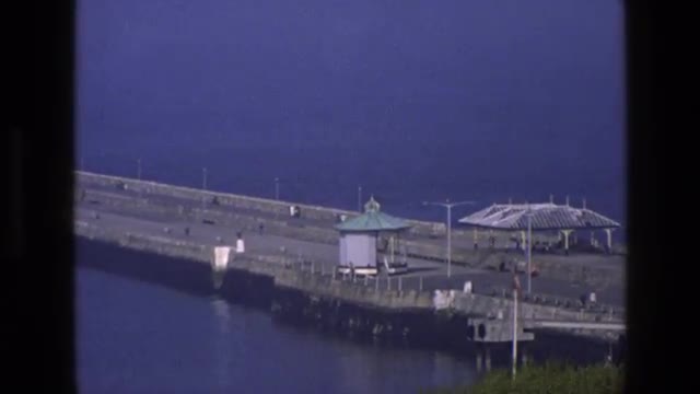 1969: a small gazebo on a large, long pier surrounded by beautiful blue water IRELAND
