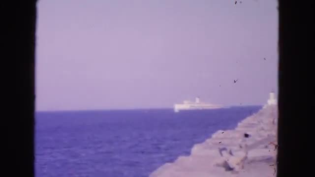 1969: a large ship slowly pulling into a beautiful harbor with a pier in the background IRELAND