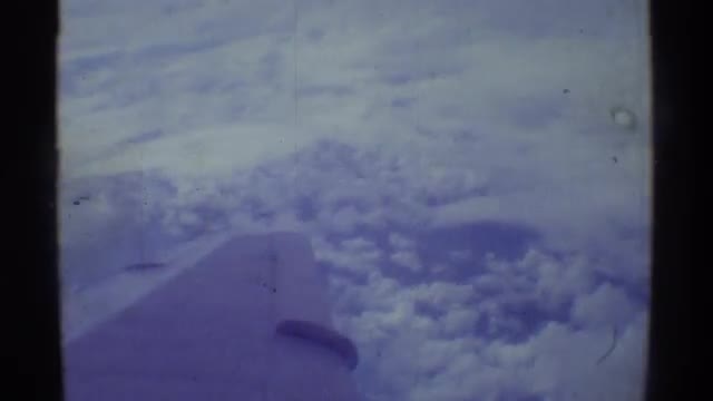 > 1971: the view of a wing and of clouds in a blue sky from a window airplane HAWAII