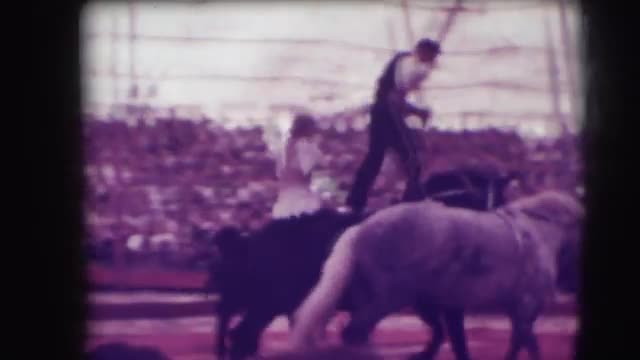 1948: various people and animals performing stunts under a tent at a circus CHICAGO